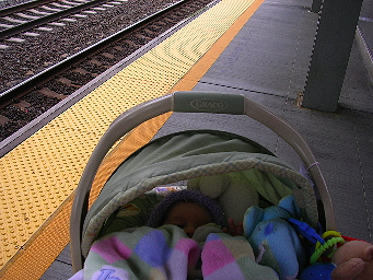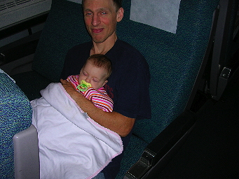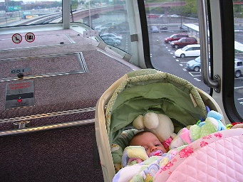 Here she is on the train enjoying riding on mommie and daddie's laps, no car seat, YEAH!