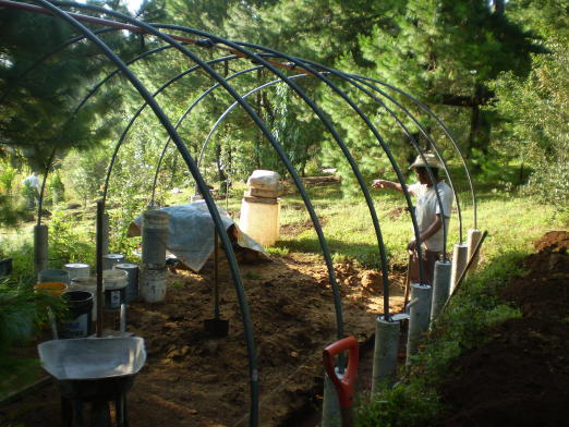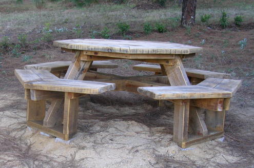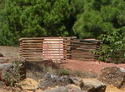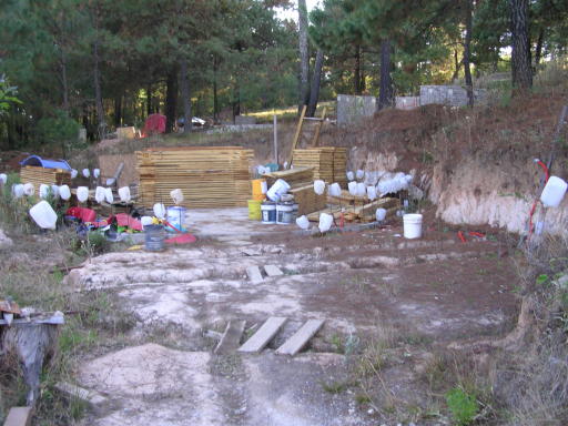Wood for activity tables is stacked and dried, waiting for a carpenter to turn it into tables: