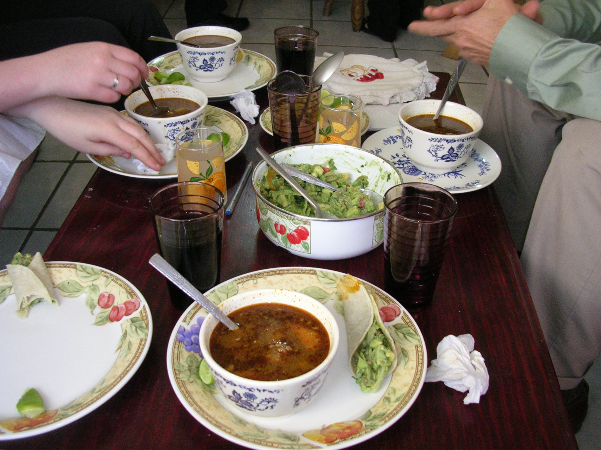 Dan from Wyoming: Saturday, February 7, Dan from Wyoming arrived. He had driven to Dallas and taken the same bus I had taken to get to Morelia, then took a taxi to the apartment. Sunday, February 8, we all went to church in Morelia at Refugio Del Rey, where we had gone 2 weeks before. I helped Dan as best I could understand the Spanish, but of course I wasn't all that good at it myself. Afterward, Dan took an interest in the music and someone let him play their guitar. He sang a song in English, and drew a crowd. We were invited to dinner at the same place we had gone 2 weeks before, which meant real Mexican food. It was really delicious. We then came back to Acuitzio, where David gave me a bunch of stuff to work on and told me to be ready for him first thing Monday morning.