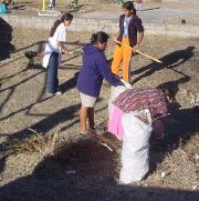 The community with government assistance gathered a team of volunteers who worked hard. They cut the brush, gathered sticks, painted over the grafiti, fixed the swings, and loaded an entire dump truck with the junk.