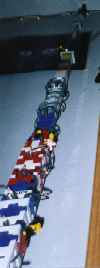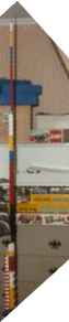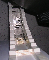 This tower I built when I was probably 13 or 14. There are actually two towers here. The smaller one that lookes striped like a candy cane is made out of older Lego bricks that seemed to be a bit more washed out than the newer bricks. I didn't want to mix them with the newer bricks, so I used them to build this tower. The taller tower is color coordinated, using all the bricks of a certain color before starting to use the next color. The tower was topped with an antenna that was barely a fingernail's width from the ceiling. The tower was rather unstable, and it did fall over a few times, sending Lego bricks throughout the room. At the base of these two towers, an entire Legoland town grew, complete with fire and police, hotel and car fixit shop. There was even a railroad and an airport.