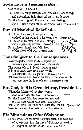Our "sheep card" is another witnessing tool. We will leave it at restaurants along with the tip. We look for opportunities to share this card.